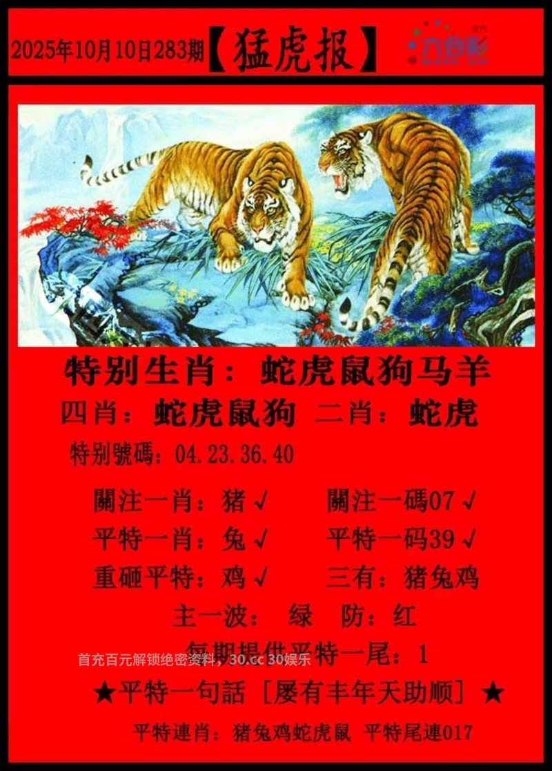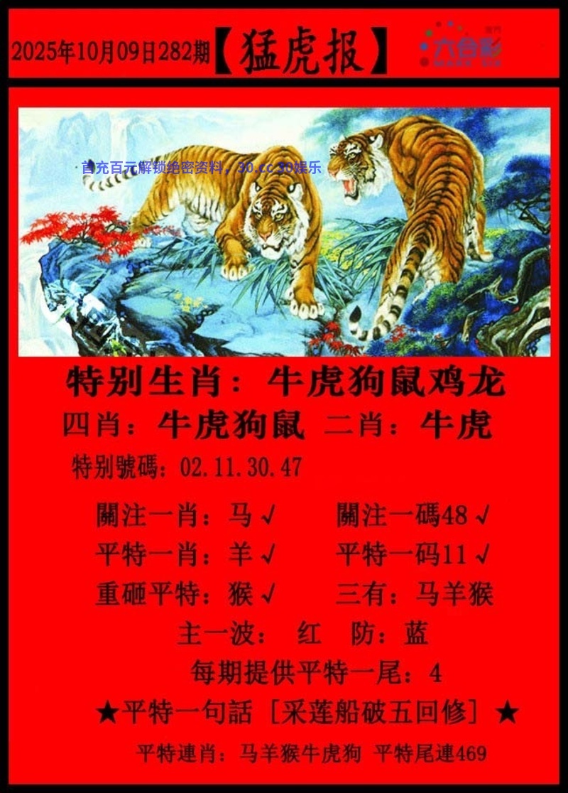 282期【虎鸡狗蛇猴兔羊龙鼠】开:牛41错 |
